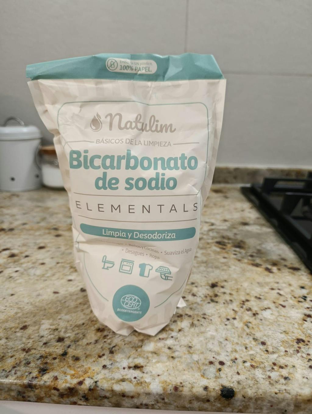 Polvo de bicarbonato de sodio 100% natural, ideal para la limpieza del hogar y de textiles.